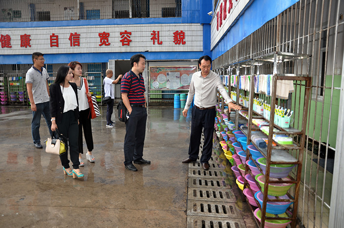 陳總一行首先參觀了學(xué)校的教學(xué)樓、食堂、宿舍樓、監(jiān)控等硬件設(shè)施,隨后在多媒體教室觀看了學(xué)校教學(xué)活動短片。在參觀過程中,魯校長就辦學(xué)初衷、發(fā)展歷程、管理模式、辦學(xué)特色(“5+1”模式)、教學(xué)理念以及辦學(xué)的戰(zhàn)略定位、發(fā)展目標(biāo)和規(guī)劃等向陳總一行作了簡要介紹。