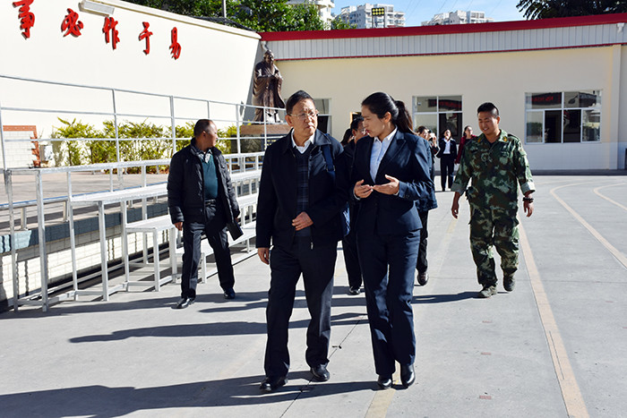 栗主任一行充分肯定了我校的辦學(xué)特色和所取得的成績(jī),對(duì)我校榮獲“昆明市青少年法治教育示范基地”這個(gè)榮譽(yù)更是稱贊有加,他說道:“好孩子學(xué)校規(guī)范辦學(xué),效益顯著,人文關(guān)懷做得很好,是個(gè)既嚴(yán)厲又溫暖的育人之地。且在有限的空間內(nèi),把‘青少年法治教育示范基地’的引領(lǐng)作用發(fā)揮得淋漓盡致,這是教育成果的示范,值得我們好好學(xué)習(xí)!