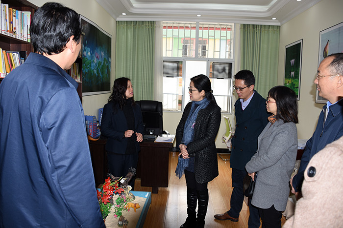 2017年12月29日上午,昆明市委統(tǒng)戰(zhàn)部副部長王蓉、昆明市委統(tǒng)戰(zhàn)部新的社會階層人士工作處處長郭亮呈、副處長李秀玲,在安寧市委常委、統(tǒng)戰(zhàn)部部長戚本福、安寧市工商聯(lián)專職副主席畢慧等領(lǐng)導(dǎo)的陪同下,蒞臨我校調(diào)研指導(dǎo)工作。