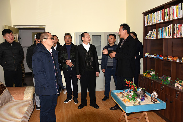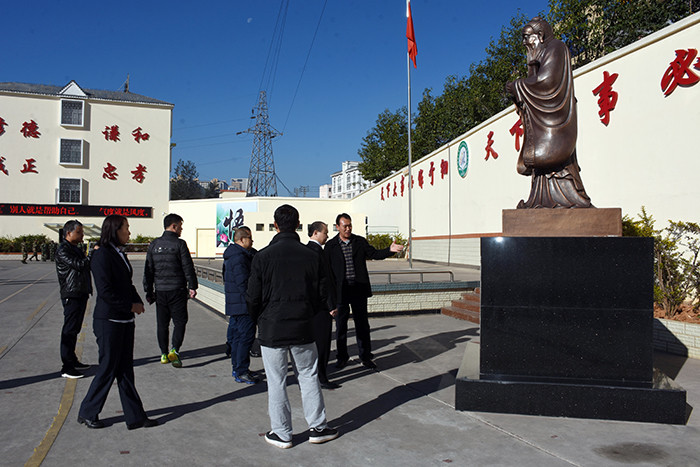 阿四•官鑫主席一行首先參觀了我校辦公樓、食堂、心理輔導室、學生宿舍、孔子雕像、監(jiān)控設備等校園環(huán)境,隨后觀看了學校教學活動短片。期間,魯校長簡要介紹了學校的發(fā)展歷程、辦學理念、辦學特色、辦學成果等。