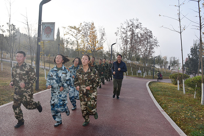 2017年11月30日早晨七點,我校組織部分學(xué)生到寧湖公園進(jìn)行五公里拉練。學(xué)校校長魯植、副校長毛積敏、總教官楊玉峰以及部分班主任全程陪跑。