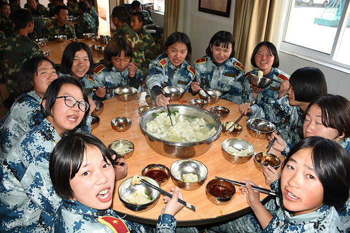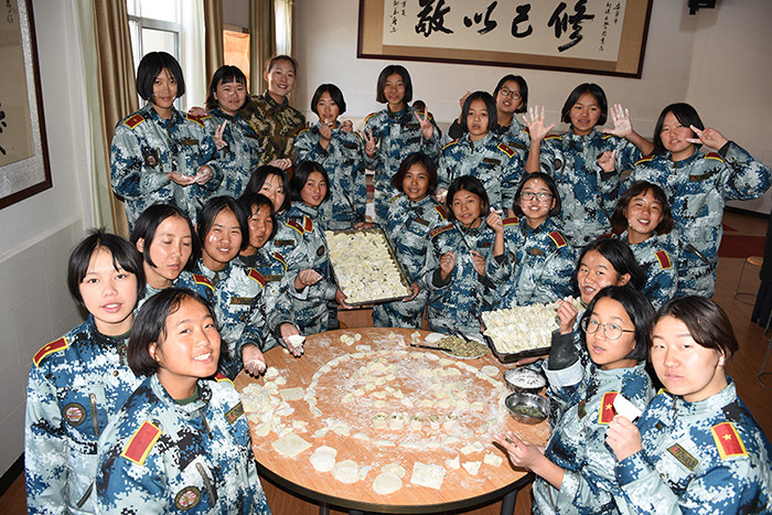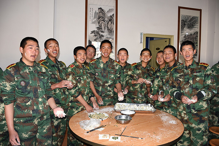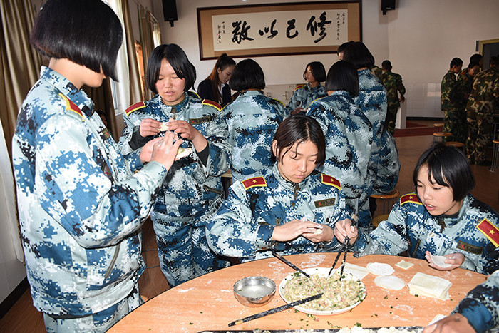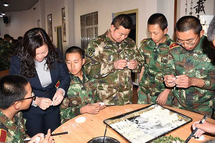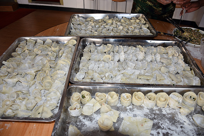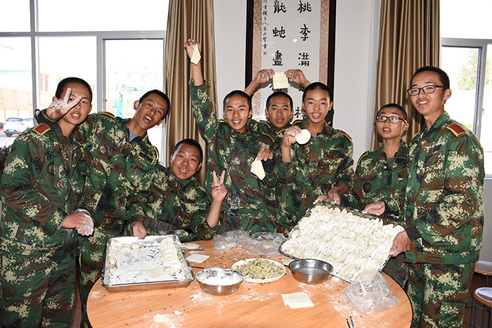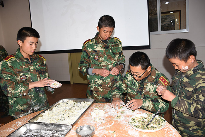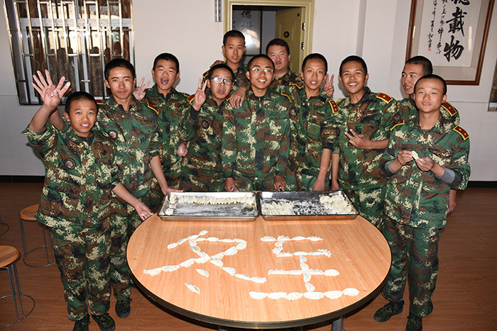 一大早,孩子們便欣喜若狂地來到食堂,迫不及待地想要大顯身手。副總教官王濤給孩子們講解了冬至的來歷和習(xí)俗后,各班主任和孩子們就一起開心地包起了餃子。你看,有的包、有的捏、有的說、有的笑、有的商討、有的相互切磋技巧......老師們一會兒做“督導(dǎo)員”,一會兒捋起袖子加入到包餃子的強(qiáng)大陣營當(dāng)中,師生同樂的暖意沁人心脾。孩子們包出來的餃子花樣繁多、千姿百態(tài),有敦實(shí)厚重的,有別致精巧的,還有四不像的?粗槐P盤別出心裁但都裹滿愛意的餃子,看著一張張掛滿面粉但都笑容燦爛的面容,吃著香溢滿口的餃子,別樣的冬至喜慶連連。