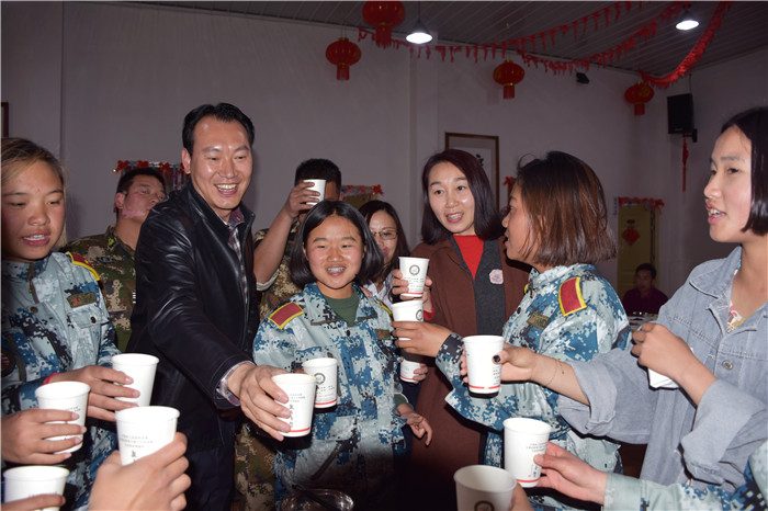 首先,我校魯植校長(zhǎng)向大家致以節(jié)日的問候并舉杯敬酒,他表示,今年在校過年的同學(xué)們都有兩個(gè)第一:一個(gè)是第一批在新校區(qū)過年,一個(gè)是第一次離開家和老師們一起過新年。相信同學(xué)們一定能在這里過一個(gè)年味十足、意義非凡、難以忘懷的春節(jié)。同時(shí),魯校長(zhǎng)也勉勵(lì)大家在這里好好學(xué)習(xí),做一個(gè)真正的好學(xué)生、好孩子。