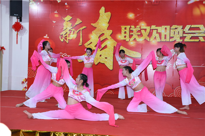接著,伴隨著一排女生們帶來的開場舞《開門紅》,晚會正式拉開帷幕。之后的節(jié)目內(nèi)容豐富多彩,有舞蹈、小品、葫蘆絲演奏、合唱等。女生們舞姿溫婉靈動,男生們舞步大氣磅礴;剛?cè)岵?jì)、異彩紛呈的舞蹈迅速點燃了全場觀眾的熱情,把場上氣氛一次次推向高潮。小品《文明城市做文明人》更是把大家?guī)肓藲g樂的海洋。