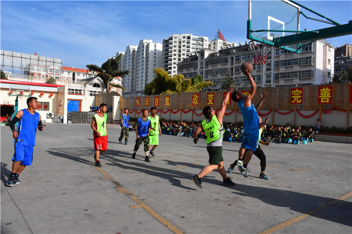 下午是師生籃球比賽。在球場(chǎng)上,隊(duì)員們頑強(qiáng)拼搏,互相配合,只見(jiàn)他們投籃、搶籃板、進(jìn)攻、防守,將場(chǎng)上的氣氛一次次推向高潮。場(chǎng)下的啦啦隊(duì)員連連為比賽隊(duì)員加油打氣,吶喊助威!