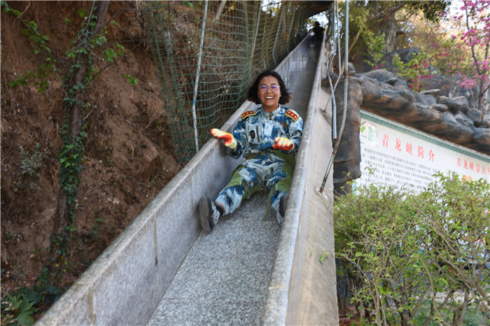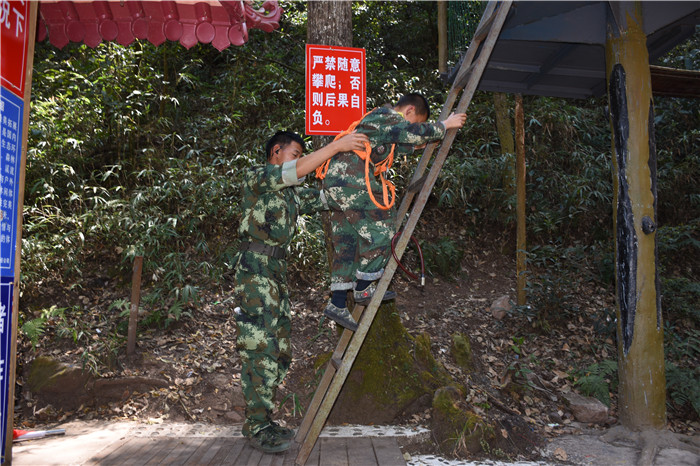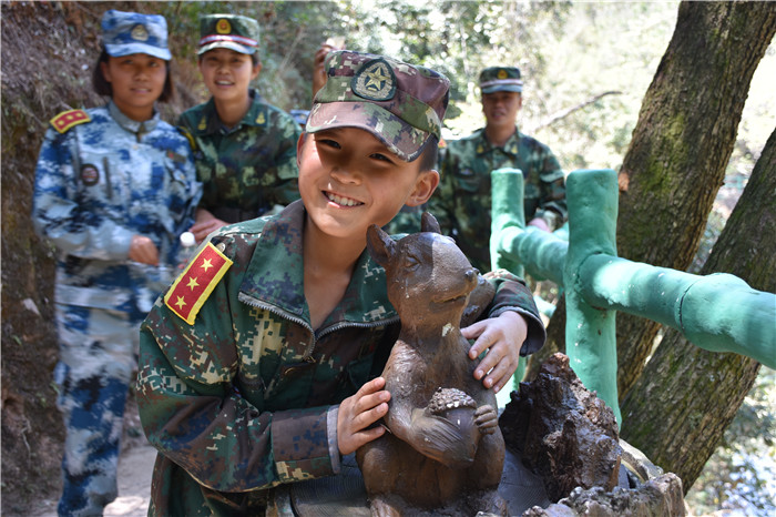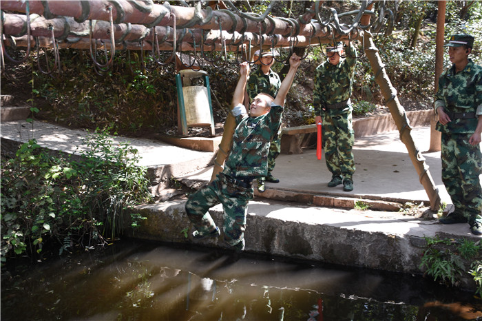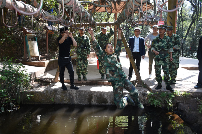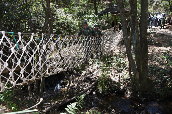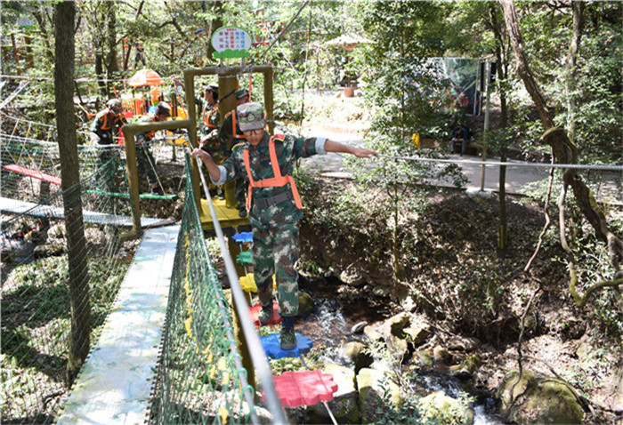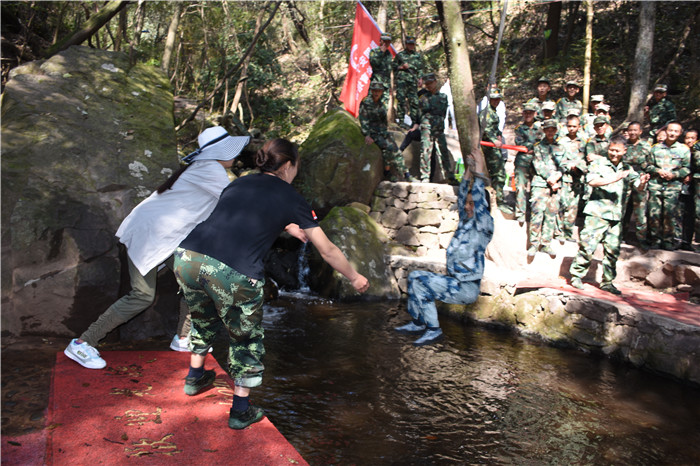 在老師們的帶領(lǐng)下,大家沿著山間的石板路,首先到達了第一個項目挑戰(zhàn)點——水上蕩繩(也叫笑料陷阱),孩子們在老師的耐心講解和示范后,相繼進行了挑戰(zhàn)。有的輕松自如,動作規(guī)范;有的驚險蕩過,虛驚一場;有的蜻蜓點水,老師巧妙護住。在結(jié)束第一個項目后,緊接著挑戰(zhàn)了“臂力渡河”,這個項目難度系數(shù)增大,為了安全起見,老師下水保護,挑戰(zhàn)成功的同學(xué)一臉興奮,挑戰(zhàn)不成功的也不氣餒,大聲說著要再來一次,F(xiàn)場加油聲、歡呼聲此起彼伏,氣氛格外熱烈。隨后進行的是“叢林穿越”,孩子們分為兩列縱隊興高采烈地沿溪而上,一條長龍穿梭在山谷之中,和煦的陽光透過稠密的樹葉灑落下來,點點金色的光斑倔強地映照在孩子們喜笑顏開的臉上,清脆的歡笑聲在山谷間回蕩。大家邊走邊在自己喜歡的地方,擺出不同的姿勢,和小伙伴們留下最珍貴的回憶。清幽的山谷,呈現(xiàn)出一幅人與自熱和諧相處的畫面。