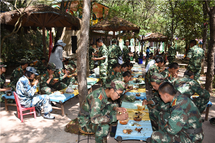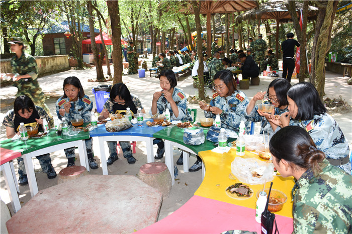 很快到了午餐時間,老師們把早早就精心準備好的各種美食(涼卷粉、鹵牛肉、鹵雞腳、鹵雞蛋、涼拌菜及牛奶、木瓜水、水果)等分發(fā)到每一位孩子手中。雖然一早的挑戰(zhàn)項目讓大家有了些許疲憊,但在美食面前,在涼爽的綠蔭下,孩子們一個個像小饞貓一樣開心地吃起來,所有的勞累頓時煙消云散。飯后,孩子們還主動地把用餐過程中所有的垃圾全部清理干凈,爭當文明小公民。