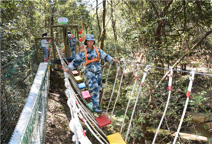下午,孩子們在“峽谷森林最美拓展大本營”又開始了一系列的高空挑戰(zhàn)項目,體驗了這條“最美森林冒險之旅”的時光隧道、鐵索連環(huán)、生命之門、單側(cè)過網(wǎng)等30個驚險刺激關(guān)卡,其間還能看到彩蝶翩躚,藤蔓纏繞,腳下是清澈的山澗溪流。這是全國首個在峽谷森林中獨創(chuàng)、全程網(wǎng)絡(luò)化管理運行的拓展大本營,全長286米,全程趣味十足。雖然在挑戰(zhàn)過程中,有的孩子有過膽怯、有過害怕,但在老師們響亮的加油打氣聲中,孩子們沒有一個退縮、沒有一個放棄,憑借著頑強的毅力、堅定的信念,全部通過了重重難關(guān)考驗。