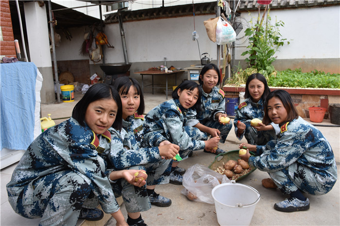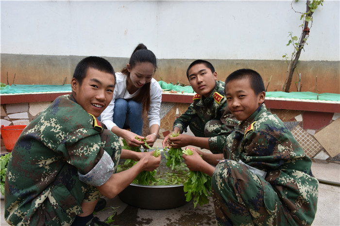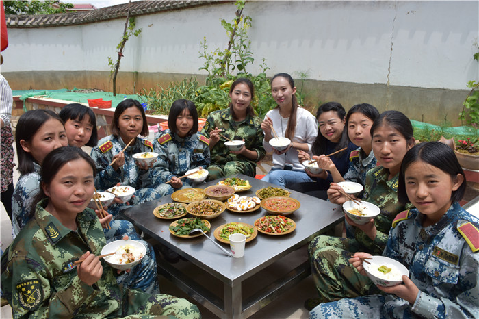 到了吃飯時(shí)間,同學(xué)們來到櫻桃園附近的農(nóng)家院,熱心的老板正在準(zhǔn)備著豐盛的午餐,同學(xué)們很懂事,都主動(dòng)幫著廚師們?nèi)ヌ锢镎、洗菜。片刻間,一盤盤美味佳肴就上桌了,孩子們吃得津津有味,大呼過癮。