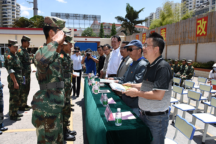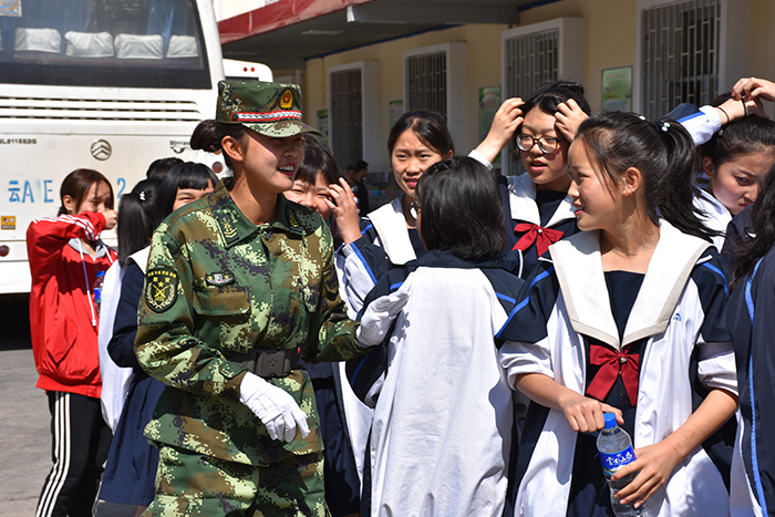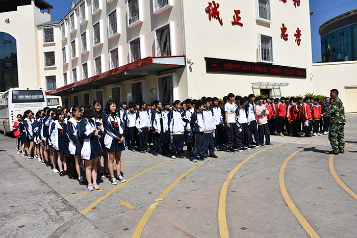 一大早,同學們聽說金殿中學的全體師生要來我校時,都激動不已,并快速打掃完衛(wèi)生后全都跑來操場上等著、盼著、還相互討論著……當看到三輛大客車進入校園的那一刻,孩子們激動了、沸騰了,并用齊刷刷的軍禮表示了最熱烈的歡迎。剛下大巴車,金殿中學的孩子們就興高采烈地跑來與我校的教官們問好、打招呼,好像早就認識一樣。原來就在上月兩校開展的教研活動中,我校教官為金殿中學的孩子們進行了軍訓,和他們結(jié)下了深厚的友誼,此時此景再見,別樣的感情不禁油然而生。