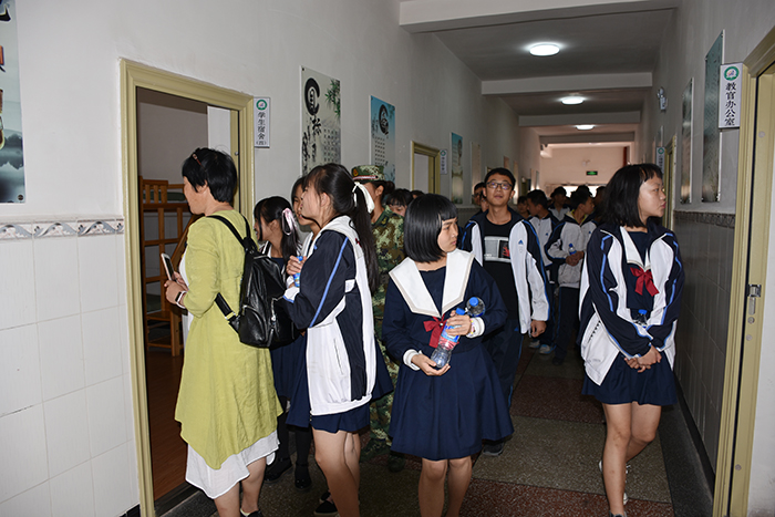 看著孩子們,我校的教官們情不自禁地下著口令,集合著隊伍,孩子們都很聽話,跟著口令,按著軍訓時的方隊,迅速整隊,一個個站得筆直挺立,儼然一個個小軍人,師生們都相視會心地笑了。金殿中學的孩子們看著我校的校園,好奇地到處打量。剛聽老師說要參觀校園時,就迫不及待地想要到處看看。隨后在老師們的帶領(lǐng)下,孩子們依次參觀了學生的宿舍、教室、食堂等。