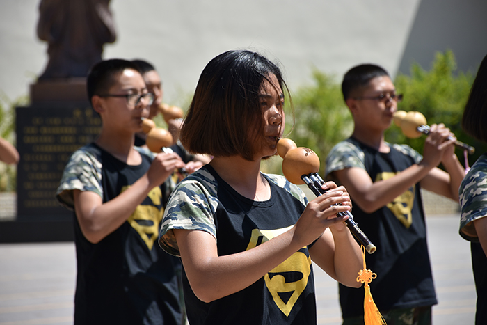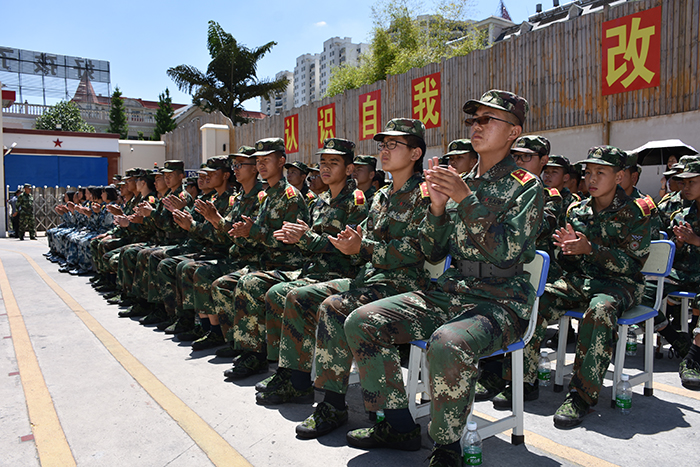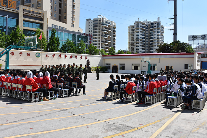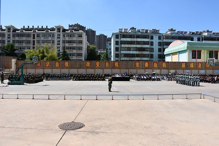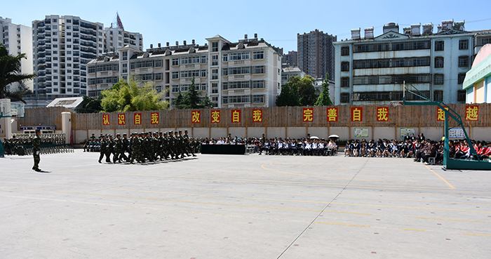 首先,在教官的帶領(lǐng)下,我校各方隊率先出場,相繼進行了男生隊列、女生隊列、女兵操、葫蘆絲合奏、匕首操、棍術(shù)方隊、感恩手語舞的表演,整齊劃一、氣勢非凡、別出心裁的表演,贏得了場下同學們陣陣熱烈的掌聲。嘉賓席上的領(lǐng)導們也不時為孩子們歡呼鼓掌。時間過得很快,一個半小時過后,我校的孩子們表演結(jié)束。該金殿中學的同學們上場了,首先派出的男生獨唱,緊接著是女生合唱,兩個節(jié)目盡顯風采,成為了一道亮麗的風景線,我校學生激動地為他們鼓掌!還相互討論著這個好帥、那個好漂亮…孩子們的話題始終不停息,而且很高興!