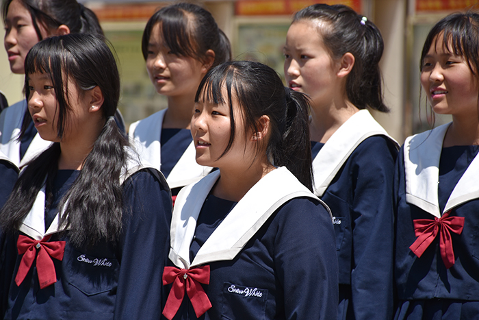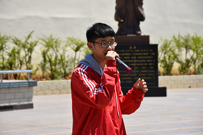 參觀結(jié)束后,活動正式開始了,全體人員在操場集合。我校魯植校長致歡迎詞,代表全校師生對金殿中學一行的到來表示最熱烈的歡迎!緊接著在莊嚴的升國旗儀式后,兩校的交流活動正式拉開序幕。
