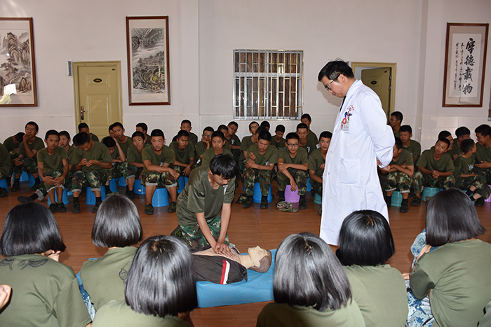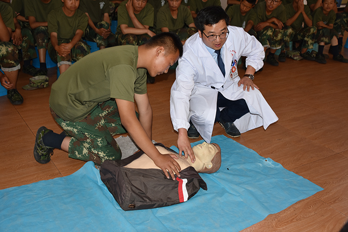 本次培訓(xùn),朱醫(yī)生用通俗易懂的語(yǔ)言,從日漸增多的意外傷害入題,對(duì)現(xiàn)實(shí)生活中遇到的異物梗阻、溺水防護(hù)、觸電防護(hù)等突發(fā)事件應(yīng)采取的有效救護(hù)措施。并著重講解了心肺復(fù)蘇的動(dòng)作要領(lǐng),孩子們興趣高漲,朱醫(yī)生讓孩子們對(duì)現(xiàn)場(chǎng)假人進(jìn)行模擬演練,并逐一指導(dǎo),每人都要過(guò)關(guān)才行。每做完一周期的心臟按壓,孩子們都覺(jué)得特別累,更深深地體會(huì)到了醫(yī)護(hù)人員的不易。隨后,朱醫(yī)生還對(duì)創(chuàng)傷救護(hù)的止血、包扎、固定、搬運(yùn)也作了解說(shuō)與演示,指出了平常生活中的應(yīng)急誤區(qū)。