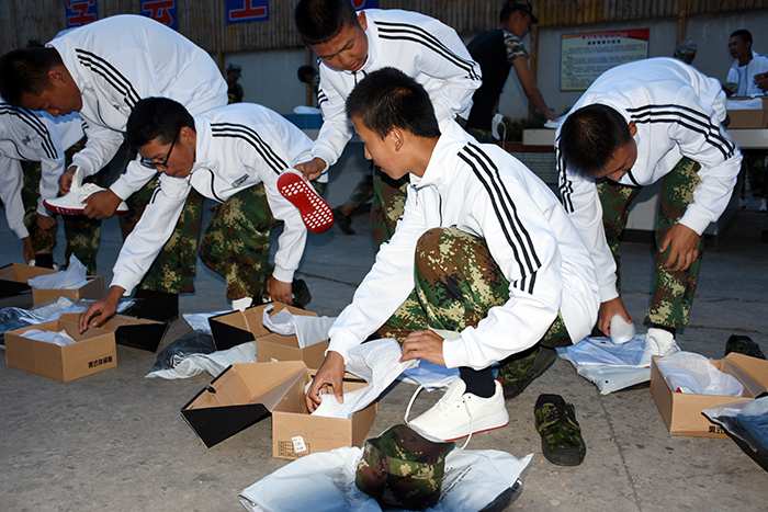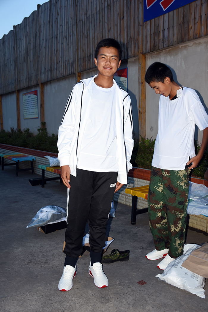 領(lǐng)到新裝的孩子非常興奮,不時(shí)說著“真好看”、“好喜歡”、“好漂亮”、 “太幸福了”之類的話語,并迫不及待地?fù)Q上漂亮的校服,站在鏡子面前,左照照、右照照,是那么合身、那么帥氣、那么有朝氣。你瞧,潔白的T恤和外套,配上黑色的褲子,加上白色運(yùn)動鞋,既莊重又活潑,既樸素又大方。我校使用的迷彩服和運(yùn)動服作為指定服裝,相得益彰,一個(gè)嚴(yán)肅,一個(gè)休閑,正好符合學(xué)校的“嚴(yán)管理,善對待”的教學(xué)理念,更體現(xiàn)了學(xué)校的人文關(guān)懷。