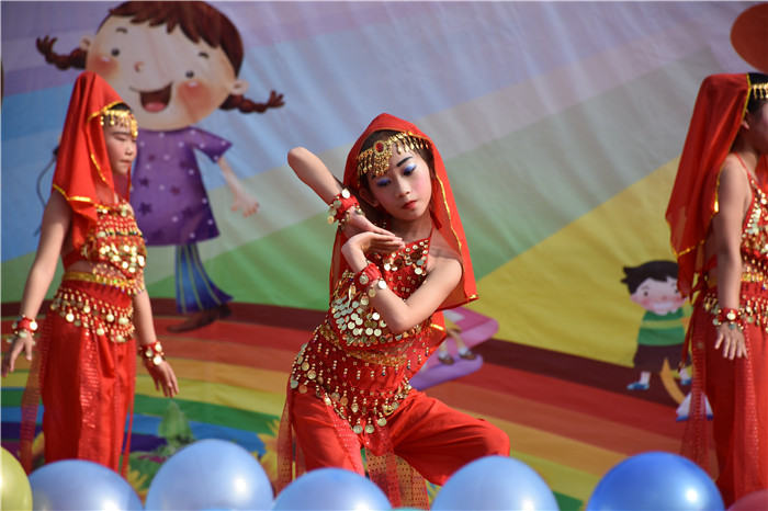 緊接著上場(chǎng)表演的是光明學(xué)校的《印度天使》。二年級(jí)的孩子們身著漂亮的印度服飾,扭動(dòng)著身姿跳起了印度舞,動(dòng)作可愛(ài)優(yōu)美,臺(tái)下的觀眾伸長(zhǎng)了脖子看得直發(fā)呆,恨不得到舞臺(tái)中央去觀看。等孩子們下臺(tái)時(shí),還目不轉(zhuǎn)睛地盯著孩子看,直呼“好可愛(ài)”“好漂亮”!