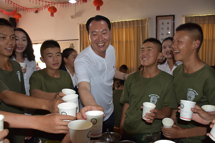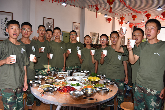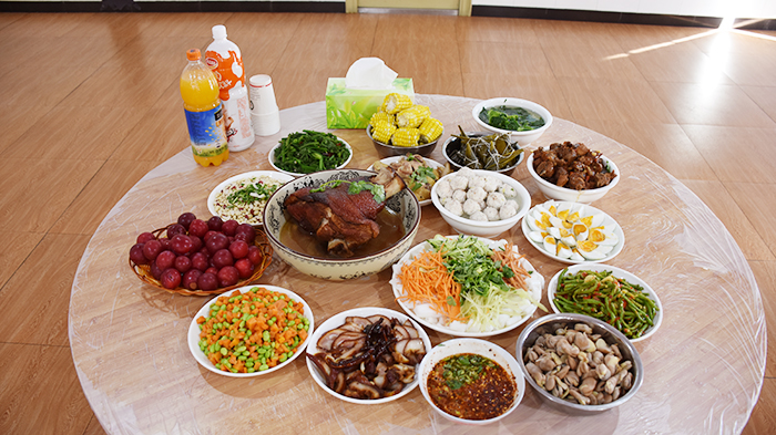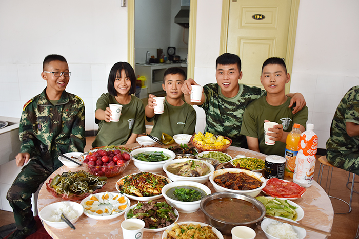 傍晚,一桌桌色香味美的飯菜全部就緒,粽子也蒸熟了,同學(xué)們興高采烈地一盤一盤端上桌,大家圍坐在一起,看著自己的勞動果實(shí)說著、笑著!過一會兒,魯植校長發(fā)表了節(jié)日祝賀和熱情洋溢的講話:“今天的端午不一樣,希望孩子們在沒有家人陪伴的節(jié)日里,能夠更深刻地認(rèn)識到親人的重要性;在沒有踏青旅游的節(jié)日里,能夠用足夠的時(shí)間改變自己,在學(xué)校完成學(xué)習(xí)目標(biāo),追求自己的人生理想……”聽到校長的祝愿,同學(xué)們掌聲不斷。開席后,孩子們吃著豐盛的晚餐、品嘗著獨(dú)特香味的粽子,不時(shí)向老師道祝福,和同學(xué)相共勉。在攝像機(jī)的鏡頭下,孩子們還爭先恐后地向遠(yuǎn)方的爸媽送祝福,希望他們端午安康!