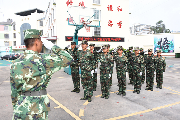 2018年8月1日,我校隆重舉行軍訓匯報表演,向中國人民解放軍建軍91周年獻禮。