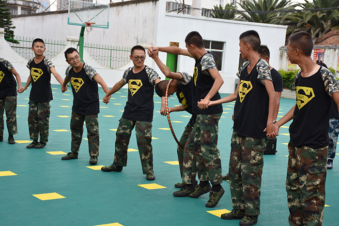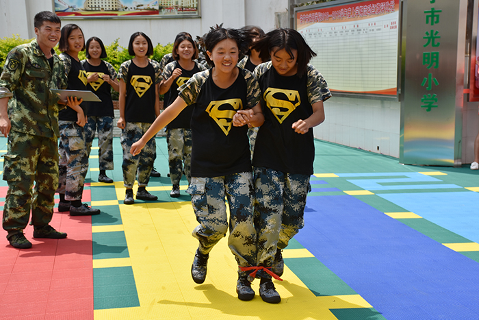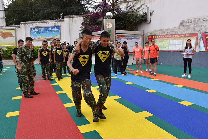 首先進行的是“兩人三足”接力比賽。在裁判的監(jiān)督下,參賽者兩人一組用紅繩把各自一只腳拴在一起,來回通過50m賽道,用時最短者獲勝。前幾組隊員走的踉踉蹌蹌,后面隊員仔細觀看并找出問題所在,沉著冷靜,一起喊著口令快速通過。在同學們的努力配合下,男生組獲得了第一名,女生組獲得了第三名的好成績。