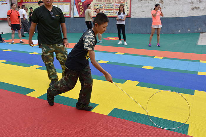 隨后進行的是滾鐵環(huán)比賽。同學們從未接觸過這項運動,但在老師簡單的教授之后,便很快學會。在比賽中,大家快速把鐵環(huán)推著往前跑,雖然中途有的鐵環(huán)偏離路線,有的總是滾不起來,但同學們 “不拋棄、不放棄”的精神感動著場下觀眾,一陣陣加油聲、歡呼聲把比賽一次次推向高潮。最終男生隊獲得了第一名,女生隊獲得了第二名。