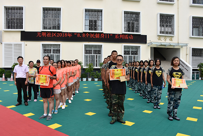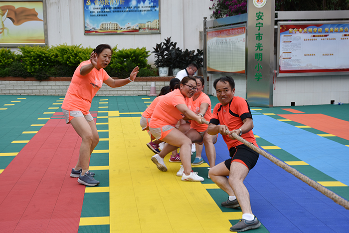 接下來的“呼啦圈過山車”、單人跳繩、雙人跳繩、集體跳大繩、拔河等項目,大家本著“友誼第一、比賽第二”的理念各自全力以赴、展現(xiàn)自我。整場比賽進行有序,在陣陣吶喊助威聲中,經(jīng)過力量的碰撞與耐力的較量,各隊以飽滿的熱情展示了自己的風采,也充分展示了體育健身的魅力。最后,光明社區(qū)領(lǐng)導為此次比賽活動中各項目的獲獎小組進行了頒獎,并合影留念;顒尤〉脠A滿結(jié)束!