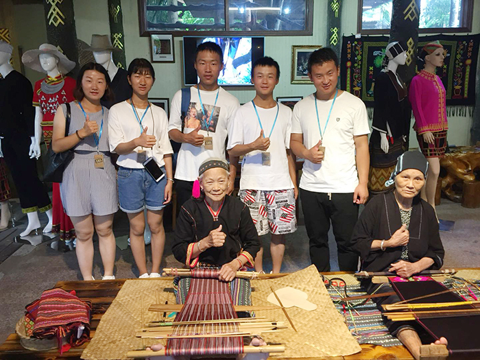 黎族以農(nóng)業(yè)為主,婦女精于紡織,至今還保留著傳統(tǒng)的手工藝,“黎錦”、“黎單”聞名于世,是中華文化寶庫中重要的瑰寶!身臨其境中,阿婆的紡織技術(shù)讓我們嘆為觀止,大家忍不住偷偷留下紀念。