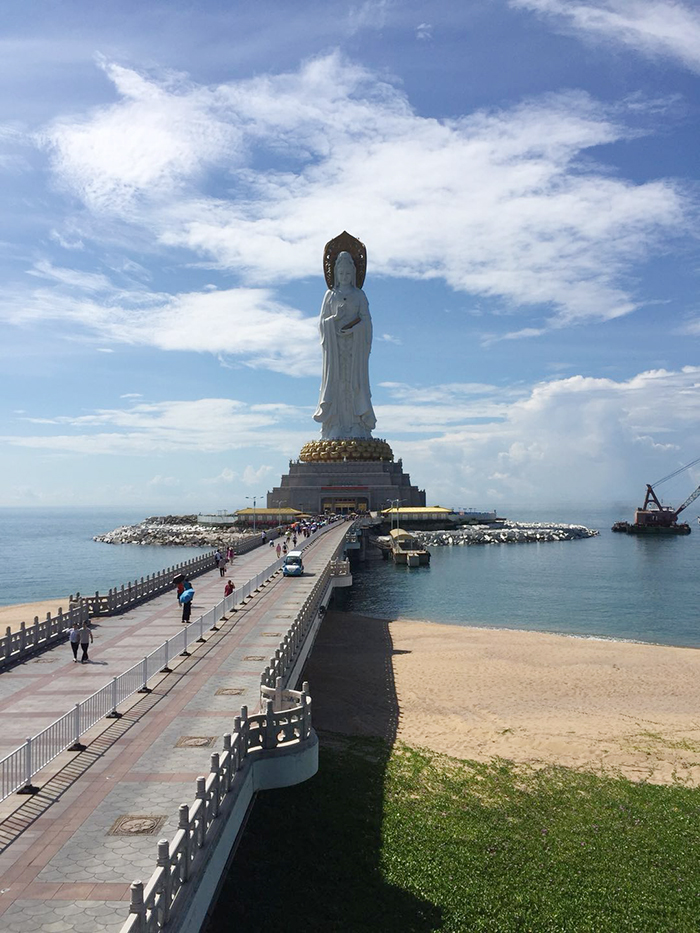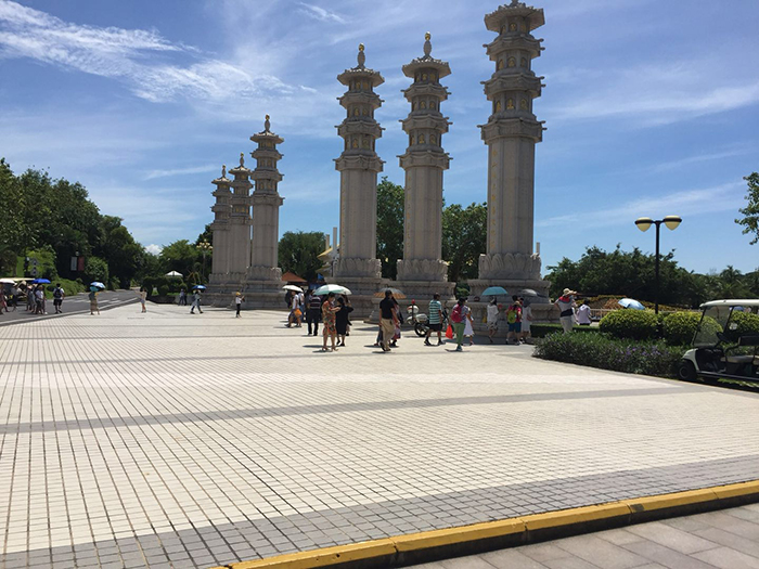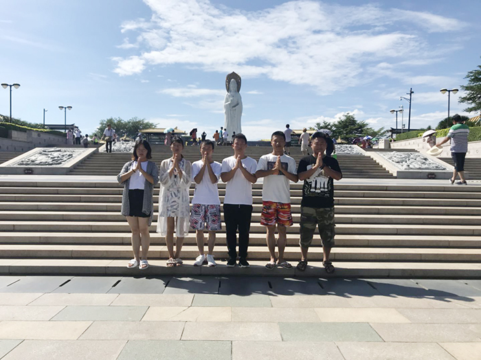 9日上午,第一站就是南海觀音。到了這里,大家頗為震撼。108米高的海上觀音圣像矗立在蔚藍色的大海之上,巍峨壯觀,實乃世界造像之最。敬建工程因其規(guī)模宏偉、意義殊勝、佛理底蘊豐富,被譽為世界級、世紀級的佛事工程。那圣潔的白與純凈的藍融在一起,讓人不禁想到“海天佛國” 四個字!