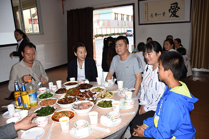隨后,在魯校長(zhǎng)一聲“開(kāi)席”的令下,大家開(kāi)心地一邊品嘗著佳肴,一邊舉杯相互表達(dá)節(jié)日的祝福,只聽(tīng)見(jiàn)一浪高過(guò)一浪的“祝爸爸媽媽中秋節(jié)快樂(lè)”、“祝全體師生中秋節(jié)快樂(lè)”的祝福響徹餐廳。席間,魯校長(zhǎng)還帶領(lǐng)校領(lǐng)導(dǎo)親切地走到孩子們中間敬茶,和大家聊家常、話祝福。當(dāng)走到學(xué)校的兩個(gè)“小不點(diǎn)”身旁時(shí),魯校長(zhǎng)情不自禁地說(shuō)著“你們長(zhǎng)高了,也更懂事了”,還不時(shí)比劃著他們?nèi)胄R詠?lái)的身高差。看著教學(xué)中嚴(yán)厲的校長(zhǎng),生活中卻是如此關(guān)切地噓寒問(wèn)暖、和藹可親,像父母,又像兄長(zhǎng),也像朋友,同學(xué)們頓時(shí)覺(jué)得非常溫暖。