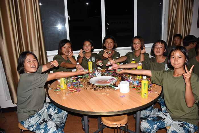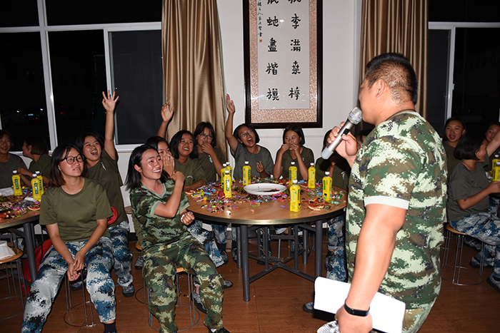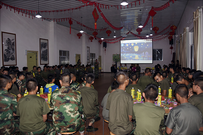 其間,晚會(huì)的主持人(副總教官王濤)把有趣的“猜謎語(yǔ)”貫穿其中,大家爭(zhēng)前恐后舉手搶答,或討論、或冥思,就為猜出謎底那一刻的滿足,拿到獎(jiǎng)品的那份開(kāi)心。整個(gè)晚會(huì),孩子們一邊吃著老師們精心在家樂(lè)福挑選的月餅、果汁、零食,一邊欣賞著精彩紛呈的節(jié)目,樂(lè)在其中,氣氛非常熱烈。