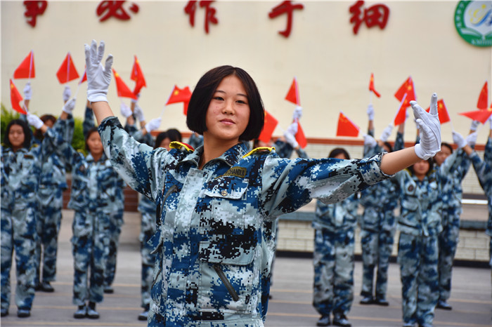 在基本的隊列表演完畢后,伴著激揚的旋律,女生方隊表演了紅旗操《國家》,節(jié)目在老師和同學們歷時數(shù)月的精心編排下取得了出彩的舞臺效果。數(shù)十名女生組成的方隊按班隊列形式不斷變換組和,表演過程縱橫捭闔,氣勢恢宏,凸顯了女生方隊平日訓練中養(yǎng)成的優(yōu)良素質(zhì)和高度的默契配合,贏得了在場所有師生的高度贊譽。