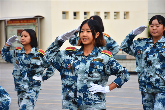 首先進行的是方陣表演,在指揮員剛勁有力的口號下,同學們精神抖擻、斗志昂揚,以班級順序依次迎接檢閱,展示訓練成果。