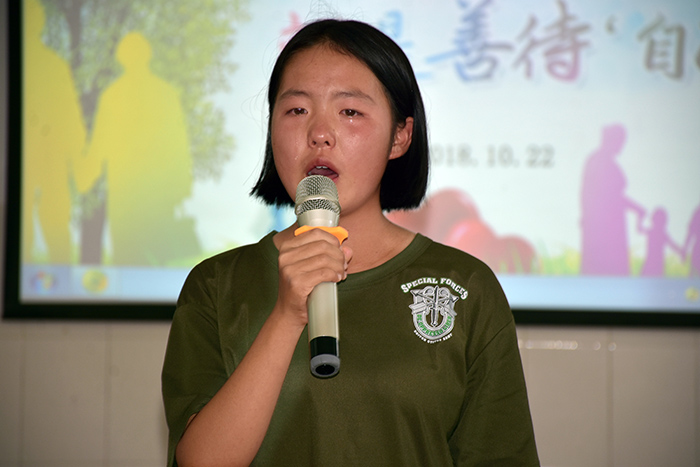 比賽中,選手們用真摯的情感、質樸的語言,結合自己所見所聞的鮮活事例,發(fā)表了深刻的感悟:“最長情的告白就是您養(yǎng)我長大,我陪您變老!百善孝為先,父母尚健在,便是好福氣。今后,我會珍惜父母在的每一天!薄袄先耸菚r代進步的創(chuàng)造者和見證者,他們?yōu)槲覀兘裉斓男腋I罡冻隽艘磺校覀儾粦撟屗麄兞餮至鳒I,希望大家都能給他們更多的陪伴與關愛,從我做起!”“我們是初升的太陽,是社會主義建設的接班人,立于時代的前沿,站在巨人的肩膀上,無疑也就擔負起了歷史的重托,讓老人們安享晚年是我們義不容辭的責任。”“老人們經(jīng)歷了太多的困苦,現(xiàn)在依舊樂觀的生活,父母把他們的‘金山銀山’都給了我,我卻連一個問候都吝嗇說出口,甚至對我的爺爺奶奶愛答不理,我為自己曾經(jīng)的少不更事和虛度光陰而羞愧!”......