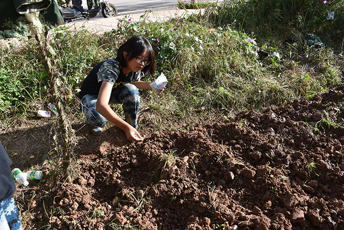 孩子們也不例外。在這一季,聽說又要開始新一輪的種植時,孩子們別提有多高興了。當周末的第一批孩子下地勞作時,其他孩子便羨慕不已,翹首以盼,希望自己也能親臨菜園,感受四季的驚喜與神秘,體驗自然的美妙與感動。真正輪到自己時,一個個連跑帶顛地來到菜地,開心地干起活來。孩子們既有分工又有合作,有的鏟除過季的作物梗、有的挖地、有的打塘、有的播種、有的施肥、有的澆水……一個個充滿了干勁,忙碌著,商量著,菜園里頓時變得熱鬧起來,一幅緊鑼密鼓編織的耕種圖出現(xiàn)在大家眼前。