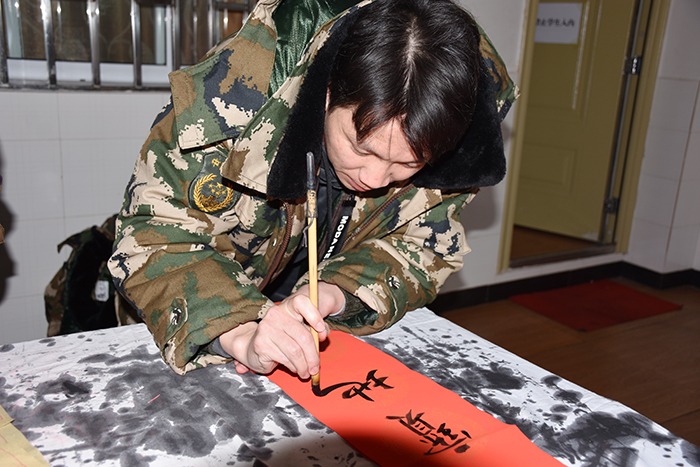當(dāng)書法老師韋昌毅把春聯(lián)準(zhǔn)備好,宣布活動(dòng)正式開始時(shí),孩子們一個(gè)個(gè)躍躍欲試,都準(zhǔn)備大顯身手一番。