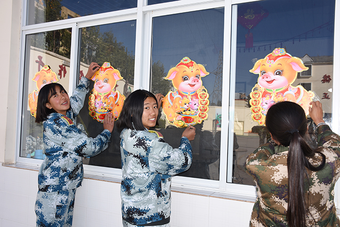 2019年2月3日至4日,為迎接豬年春節(jié)的到來,我校停課開始籌備新年的各項準備工作。一大早,師生們就對學校進行全面大掃除,隨后著手布置校園。老師和孩子們用中國結(jié)、氣球、彩帶、彩燈、紅燈籠、剪紙、春聯(lián)等飾品裝束著校園,經(jīng)過兩天的忙碌,校園內(nèi)張燈結(jié)彩,到處洋溢著濃郁的節(jié)日氛圍!大家都在以一顆翹首以盼的心迎接春節(jié)的到來。借此,好孩子學校祝福各位領導、各位家長、各位校友新春快樂!闔家幸福!萬事如意!