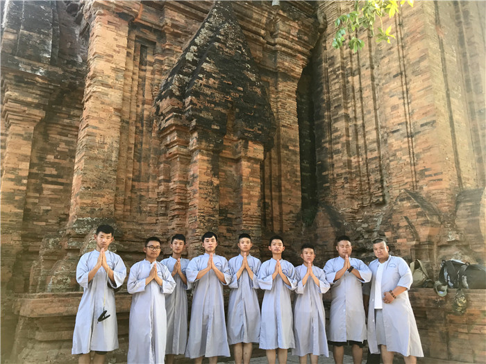 根據(jù)行程安排,孩子們9號(hào)到達(dá)目的地后,卸下航程的疲憊,美美睡了一覺,10日一大早品嘗了當(dāng)?shù)氐拿朗澈,便前往參觀芽莊最重要的歷史遺跡——占婆塔。這座隱藏在芽莊的“小吳哥窟”,站在其頂部平臺(tái)眺望,芽莊碧藍(lán)的海港都盡收眼底。這里信奉師婆,受印度文化影響很深。印度教徒稱占婆女神是印度教希瓦神的化身,越南佛教徒稱她為天依女神,保護(hù)著靠海吃海的漁民,相當(dāng)于中國(guó)漁民心目中的媽祖。不斷更疊的歷史,讓曾經(jīng)這座占婆人的神祗在各種文化親潤(rùn)下發(fā)生著變化,今天的遺址上,既能看到歷史變化的痕跡,也能體味到越南人民宗教信仰的永恒。