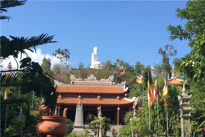 11日清晨,伴著金色的陽(yáng)光、新鮮的空氣,新的一天拉開帷幕;蛟S,剛來芽莊時(shí),就會(huì)發(fā)現(xiàn),在芽莊市區(qū)任何地方都能看見一尊24米高的白色大佛,這便是龍山寺了。寺中的大佛安坐于蓮花之上,坐臥山巔,好似在俯視眾生的歡樂與煩憂,讓人在佛光之間感悟山海奇跡。注視著當(dāng)?shù)匦疟娤囟\(chéng)禮佛的場(chǎng)景,多少會(huì)讓人的內(nèi)心能夠平靜下來。