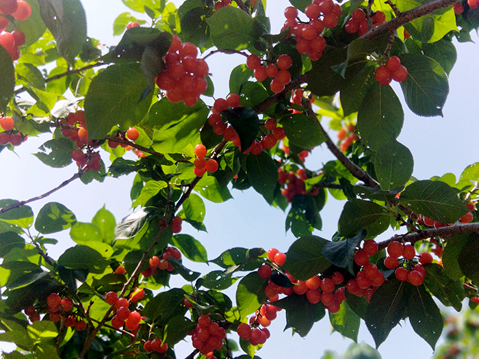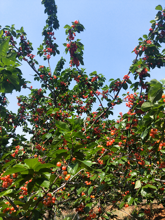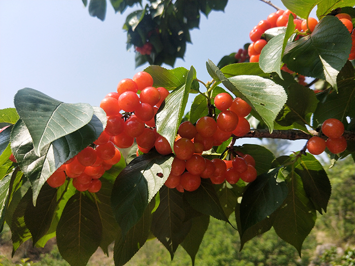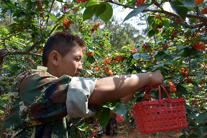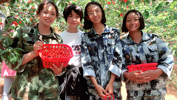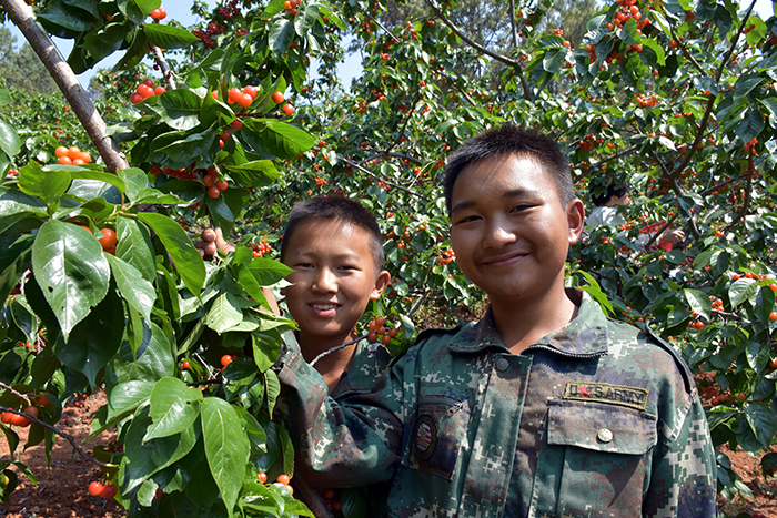 上午9點(diǎn),孩子們乘著大巴車(chē)興高采烈地出發(fā)了,一路上伴著歡歌笑語(yǔ),不知不覺(jué)1小時(shí)的車(chē)程就已到達(dá)目的地。進(jìn)入櫻桃園,看到漫山遍野的櫻桃樹(shù),晶瑩剔透的紅櫻桃如珍珠般綴滿枝頭,一串串簇?fù)碓隰浯浒愕木G葉中,露出了紅紅的笑臉,令人頓覺(jué)心花怒放和垂涎三尺。同學(xué)們迫不及待又小心翼翼地摘下一顆又紅又大的放入口中,細(xì)細(xì)品嘗這春天最后的美味。一顆不夠,又來(lái)一顆,還是不夠,貪吃的孩子們,便一把一把的往嘴里塞,那股香甜豐盈的滋味流淌在身體的每一處,滲入骨髓,如沐醉人的春風(fēng),讓人欲罷不能,學(xué)習(xí)訓(xùn)練帶來(lái)的疲憊也隨之一掃而空。