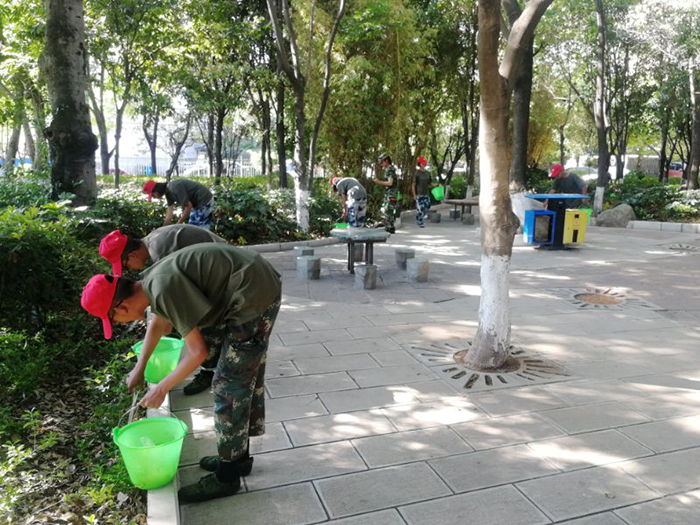 在柳樹花園廣場,孩子們頭戴“小紅帽”, 首先在團旗下進行了莊嚴宣誓,隨后在老師和社區(qū)工作人員的帶領下,熱火朝天地拿起火鉗、水桶等工具,對文化活動廣場、草坪里的樹枝、果皮、紙屑、煙頭、白色垃圾等雜物進行了一次徹底的清理。經(jīng)過2個多小時的勞動,休閑廣場的整體環(huán)境得到了明顯的改善?粗约旱膭趧映晒蠹壹娂娐冻鲂牢康男θ。