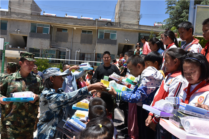 早晨七點,天剛亮,師生們便乘車前往,一路馬不停蹄,驅(qū)車五個半小時終于到達鄉(xiāng)政府。簡單的午飯后,大家立即趕往湯郎鄉(xiāng)小學看望那里的孩子們,給他們送上了筆、文具盒、練習本等學習用具以及生活物資?粗⒆觽儤銓嵉哪橗,對知識的渴望,我校領導十分欣慰,鼓勵孩子們要發(fā)奮學習、健康成長。師生們還特地為湯郎鄉(xiāng)小學的同學們表演了葫蘆絲合奏《荷塘月色》和《清清玉湖水》,并用整齊的隊列致以孩子們最良好的祝愿。這是我們與湯郎鄉(xiāng)小學的互動,也是一份飽含深情的精神食糧。雖然捐贈的物資不多,但對這里的孩子們來說,卻是一次赤誠的關懷與鼓勵。