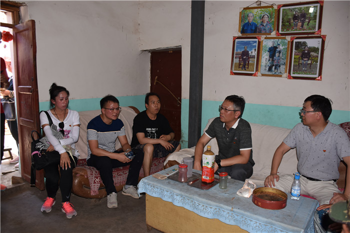 捐贈結(jié)束,盡管天氣特別炎熱,氣溫高達39攝氏度,但大家顧不上休息,在村主任的帶領下,頂著高溫徒步來到細柞村,走訪看望貧困戶,每到一戶,師生們都與其促膝談心,噓寒問暖,詳細了解他們的家庭收入、生活住房情況等,同時給貧困戶送去衣物和捐款。受贈的樸實老人接過沉甸甸的捐贈款,感動不已,倍感溫暖。