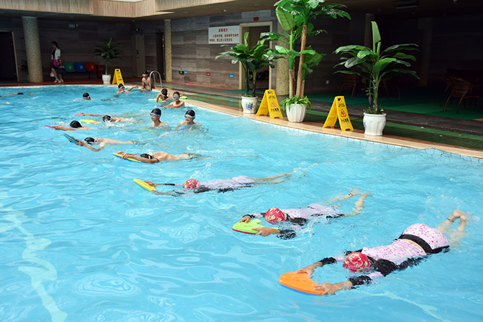 經(jīng)過學(xué)校前期的嚴(yán)密部署和周密安排,成立專門領(lǐng)導(dǎo)小組,對(duì)課程的設(shè)置,以及教學(xué)中遇到的問題作全面考慮,集思廣益,保證游泳課順利、安全開課。早在開課前,學(xué)校便多次對(duì)同學(xué)們進(jìn)行了充分有效的安全教育,要求全體同學(xué)嚴(yán)格按照教練的要求在泳池內(nèi)開展學(xué)習(xí)。為確保教學(xué)的質(zhì)量與安全,學(xué)校聘請(qǐng)教學(xué)經(jīng)驗(yàn)十分豐富的專業(yè)游泳教練,不僅技術(shù)過硬,而且擅長(zhǎng)針對(duì)青少年開展游泳教學(xué),保證上課質(zhì)量。療養(yǎng)院的領(lǐng)導(dǎo)也給予了大力支持和保障,為孩子們提供了優(yōu)質(zhì)的環(huán)境和服務(wù)。游泳館嚴(yán)格按照《游泳池水質(zhì)標(biāo)準(zhǔn)》進(jìn)行水質(zhì)監(jiān)測(cè),保證干凈衛(wèi)生,通風(fēng)照明良好,各項(xiàng)設(shè)施完好,救援設(shè)備充足,且水溫恒溫在25—29℃。同時(shí),游泳館還安排教練員在指定崗位隨時(shí)做好充分準(zhǔn)備,全程嚴(yán)密關(guān)注孩子的學(xué)習(xí),全面做好安全防護(hù)工作。