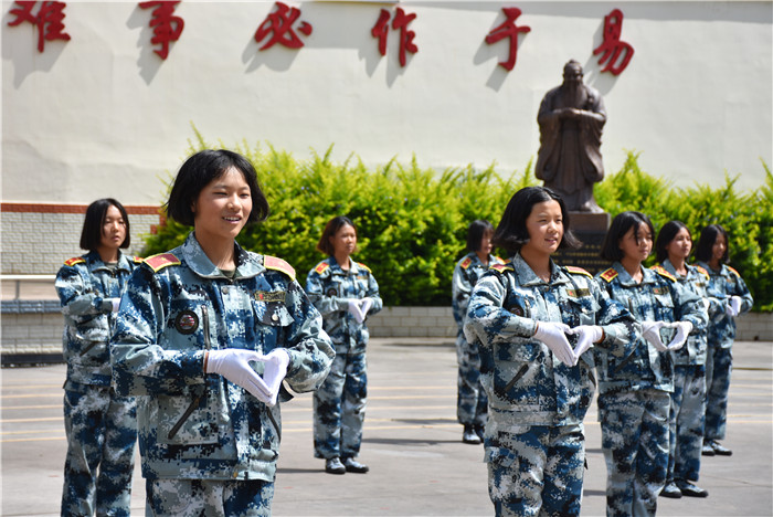 基本的隊(duì)列表演完畢后,女生方隊(duì)進(jìn)行了手語操《厚德載物》和女兵操《請(qǐng)不要叫我女孩》的表演,鏗鏘亦溫柔,舉手投足間煥發(fā)出勃勃生機(jī),將會(huì)操表演推向了高潮。男生方隊(duì)也毫不遜色,擒敵拳、匕首操更是勢(shì)如霹靂,強(qiáng)健的體魄展現(xiàn)出堅(jiān)定的意志,自律自強(qiáng)的品質(zhì)中綻放出青春的色彩,展現(xiàn)了當(dāng)代軍人的風(fēng)采。