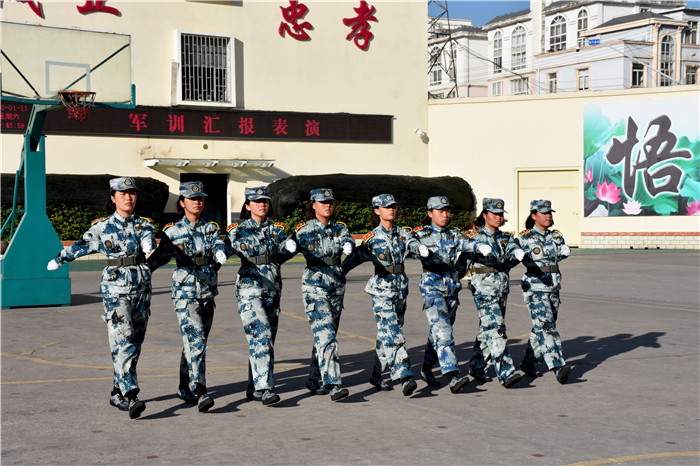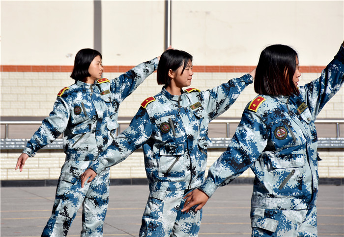 基本隊列動作表演結(jié)束后,各方隊在教官的指揮下進(jìn)行了擒敵拳、應(yīng)急棍、手語操、女兵操等表演。同學(xué)們整齊的隊伍、精準(zhǔn)的動作、昂揚的士氣、嘹亮的軍歌、優(yōu)美的旋律、燃燒的激情贏得了陣陣掌聲。