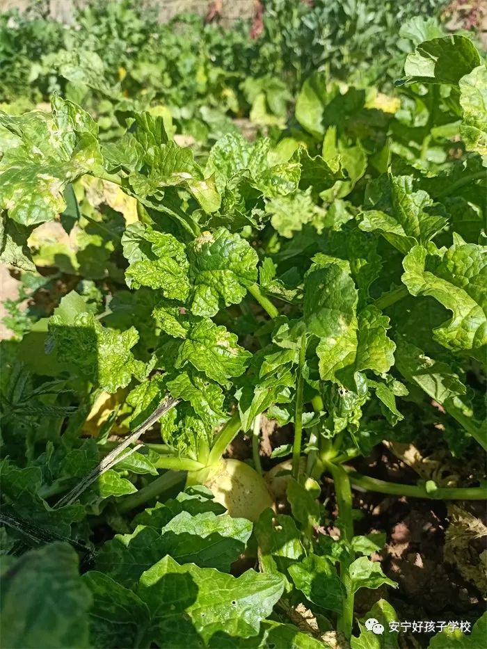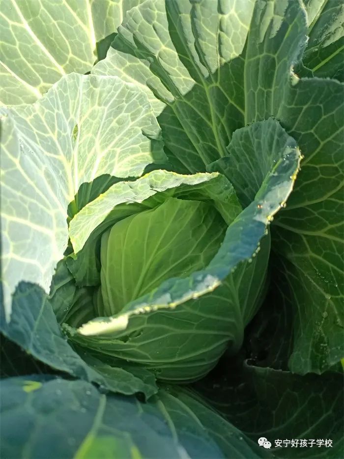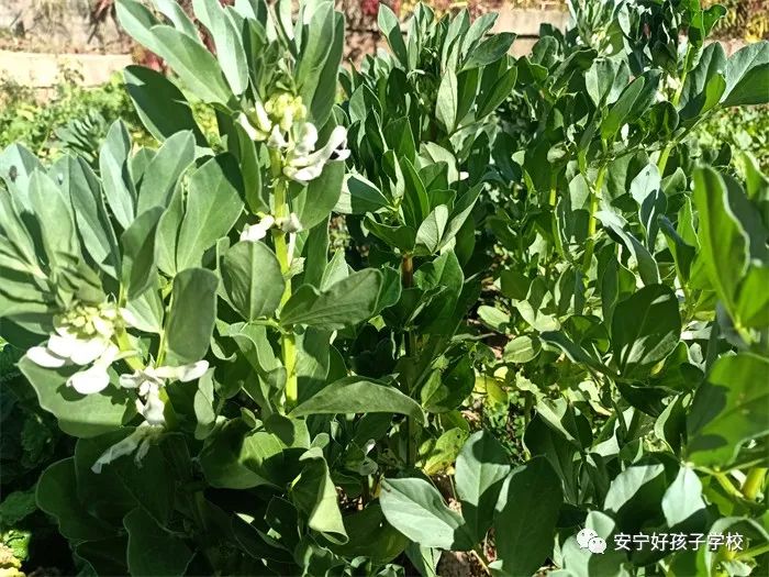 孩子們干活累了,就饒有興致地去觀察之前的同學所取得的階段性成果。或是看看正開花的蠶豆,或是瞧瞧倔強生長的豌豆和蘿卜,或是聞聞綠油油的青菜,或是摸摸即將可以享用的包菜或苤藍...... 實物可比圖片生動有趣多了,它們的生長形態(tài)如此不同,成長周期也不一樣,卻又都生長在同一片土地上,大自然的無限魅力,讓孩子們的眼睛更加敏銳,思維也活躍起來。