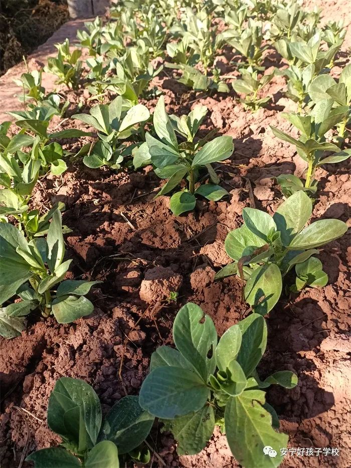 在這一季,聽說又要開始新一輪的種植時,同學們別提有多高興了。當前兩批的孩子下地勞作時,其他孩子便羨慕不已,翹首以盼,希望自己也能親臨菜園,感受四季的驚喜與神秘,體驗自然的美妙與感動。真正輪到自己時,一個個喜笑顏開地來到菜地,熱火朝天地干起活來。孩子們既有分工又有合作,有的負責松土、有的負責打塘、有的負責栽苗、有的負責澆水……大家忙碌著、商討著,菜園里頓時變得熱鬧起來,一幅緊鑼密鼓編織的耕種圖出現(xiàn)在大家眼前。